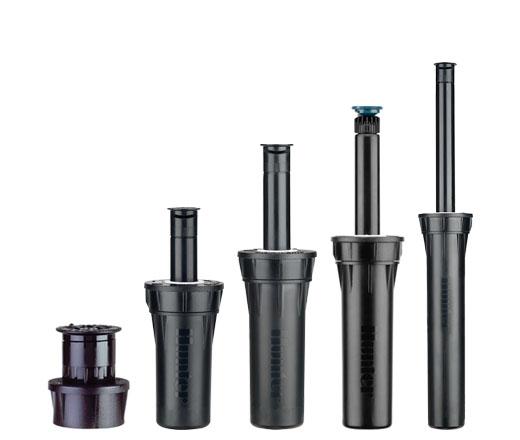 Hunter Pro-Spray Sprinkler Bodies are engineered to ensure long-lasting, reliable performance. Available in heights from shrub to 12”, Pro-Spray heads feature durable construction that is second to none, exclusive body cap design that doesn’t leak even when loosened, and a reliable, easy-to-adjust two-piece ratchet. Pro-Sprays are compatible with Pro Adjustable Nozzles, Pro Fixed Nozzles, and MP Rotator® Nozzles. All models also include a a directional flush plug for cleaner system flushing. The Hunter Pro-Spray Sprinkler Body is compatible with all industry-standard female nozzles, offering a high degree of flexibility.